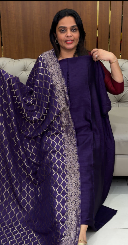 FORWARD SEMI RAW SILK TOP,BOTTOM AND DUPATTA - IHA 30953