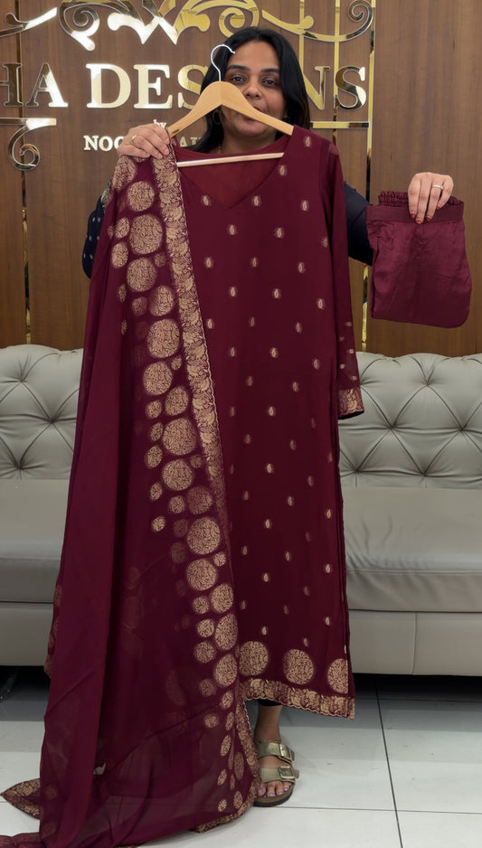 IHA'S IN-HOUSE GEORGETTE BANARASI TOP,BOTTOM AND DUPATTA - IHA 30910