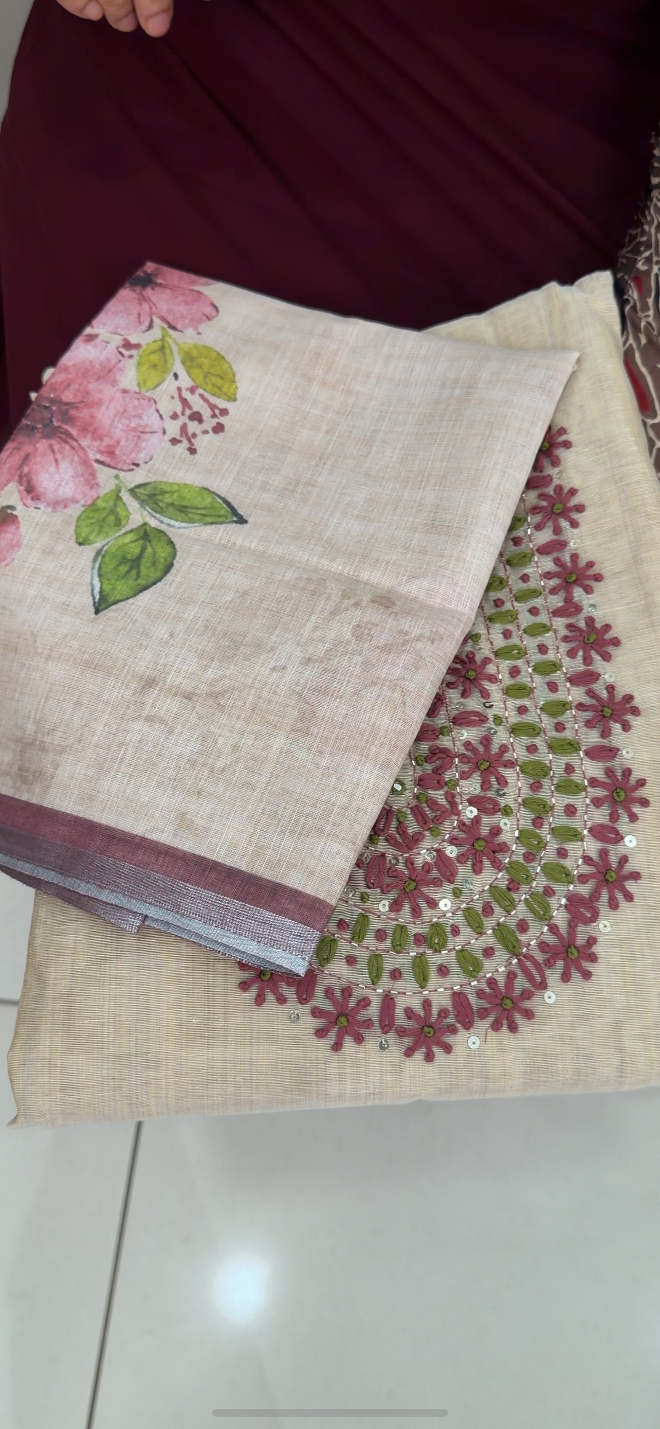 * Dye 'bleeding' onto the pallu from the body - this is common in powerloom sarees.